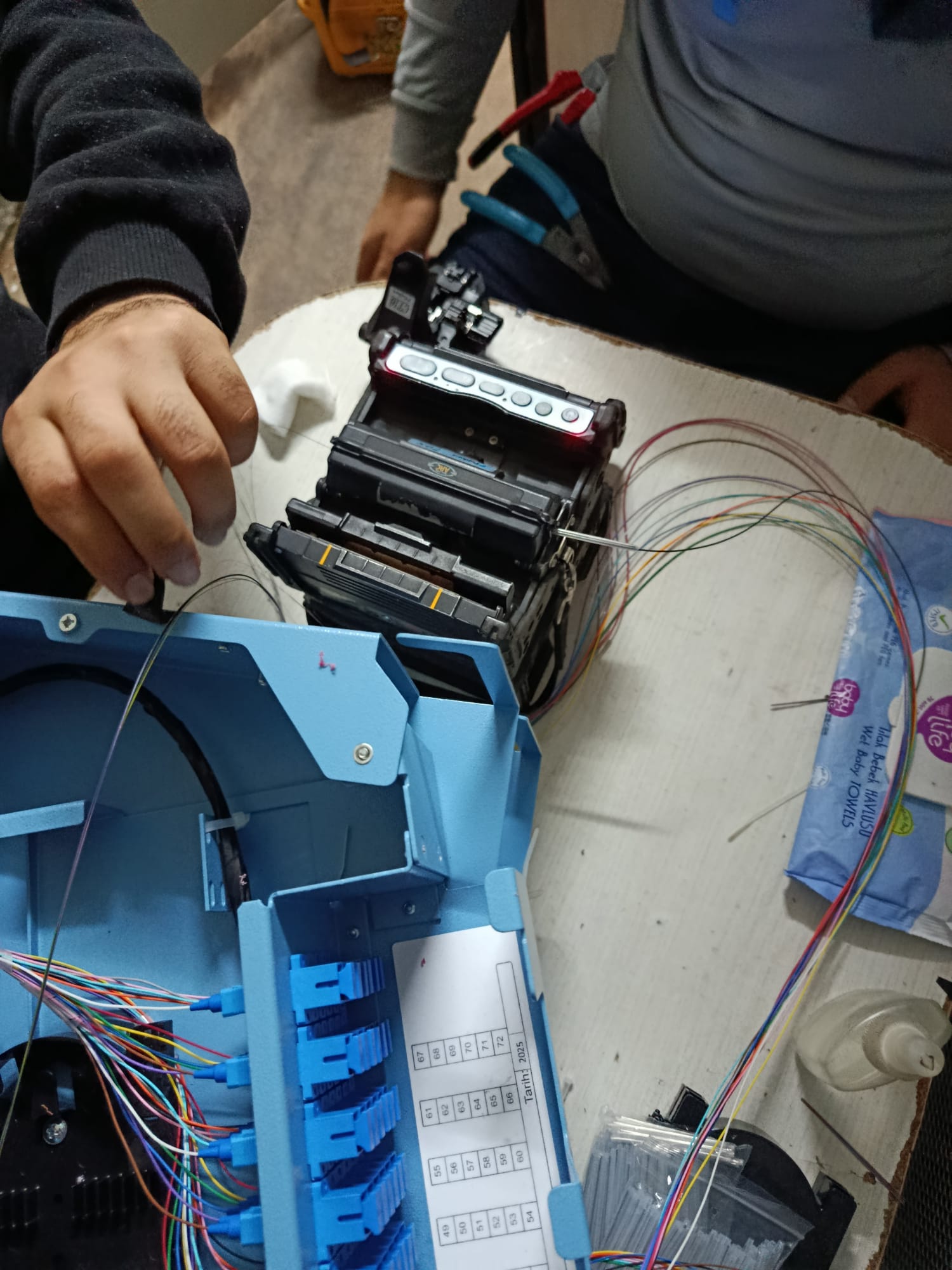- Fusion splicing and tray organization